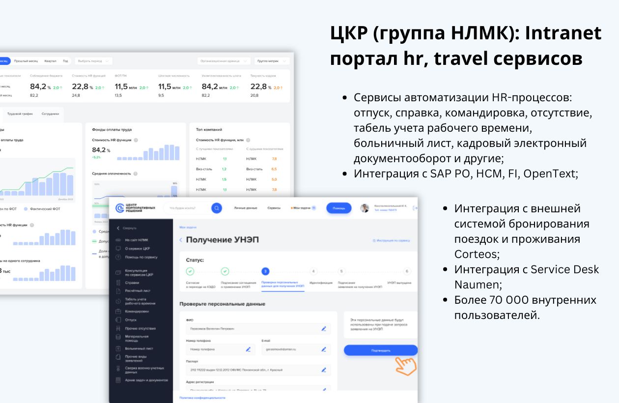 Внутренние корпоративные порталы для решения HR, Travel и прочих задач. CRM системы автоматизации взаимодействия с клиентами. Системы управления проектами и задачами компании.