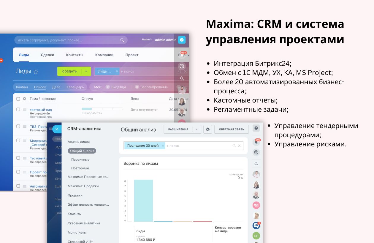 Внутренние корпоративные порталы для решения HR, Travel и прочих задач. CRM системы автоматизации взаимодействия с клиентами. Системы управления проектами и задачами компании.